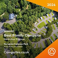 Nurseries Caravan Park is a family run holiday park for touring caravans, motorhomes, campervans and trailer tents close to York, North Yorkshire. We also have self contained glamping pods available nestled amongst the trees.